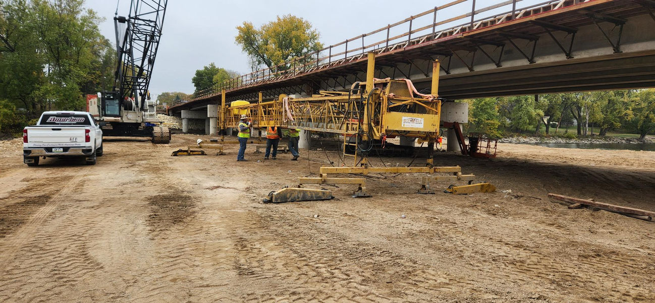 The center truss has been removed. United Contractors continues to build the causeway in the river. They are now building it broader to protect the site encase the water levels rise with the incoming rain and snow this week. The east span has 50% of the concrete removed from the deck. The truss should be removed sometime in the middle of next week. United Contractors plans to start removing the existing piers this week. The soil borings for the drilled shafts are currently in for review. Once the review process is complete, United Contractors will start the drilled shafts.